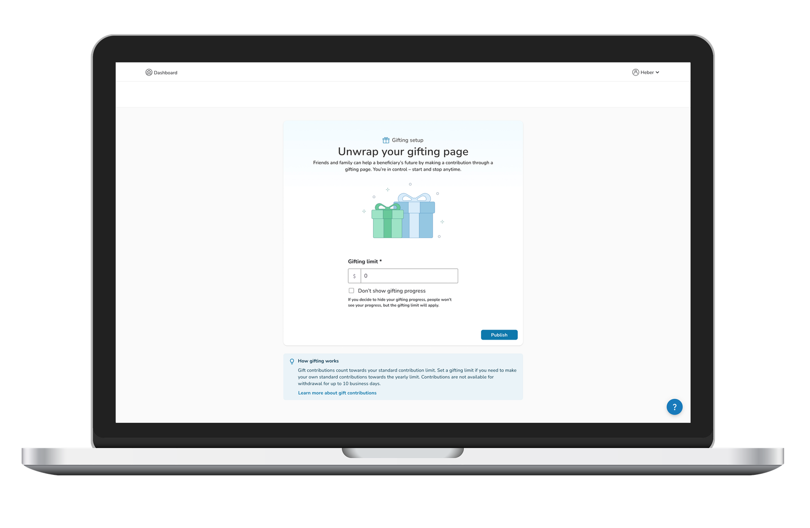 For easier gifting, family and friends can create a gifting profile to save their banking information or set up recurring gifts to regularly contribute at specific times.